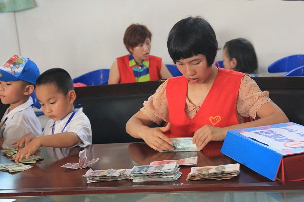 最后结束时,收银员、志愿者都一一展示了自己的劳动成果,每个收银箱都装满了钞票,大家在年级组长的带领下,来到会议室,清点了超市盈利的善款,共计6078.2元,很了不起,这是大家共同努力的最好证明!