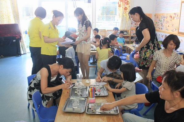 2013年5月31日下午,碧桂花城幼儿园举行小班组教学开放日活动。四个班共有7个不同的活动内容,有《磁铁》、《蔬果拓印画》、《斑斑点点不见了》,还有《形色对应与整合》《哈巴狗》等。孩子们在活动中积极尝试,仔细观察、大胆创新,表现出良好的学习品质,真实展示出孩子自己的兴趣、爱好、个性及能力都是独特的,孩子们在学习活动中的良好表现让家长都觉得孩子们长大了,动手能力、学习习惯都很大提高。