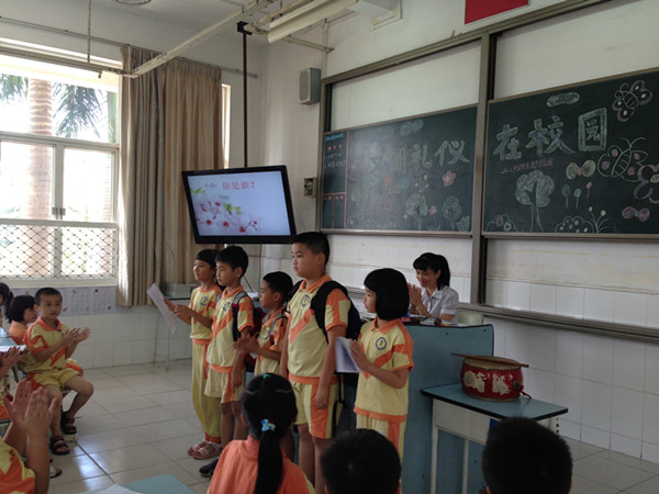 今天,轮到二年级老师上阵了。我们二年级组挑了在这方面最有经验的何老师,再加上她所带的二(3)班学生非常出色,文明礼仪这一块儿也做得特别好,所以这节课精彩纷呈,亮点频现。