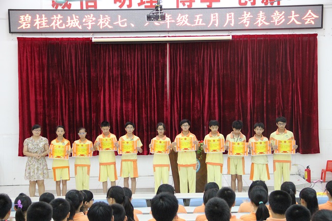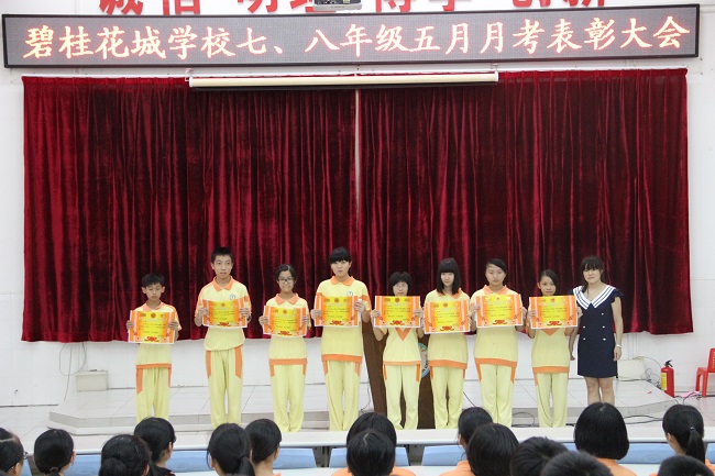 2013年六月七日,七八年级组齐聚于阶梯教室,举办月考表彰大会。