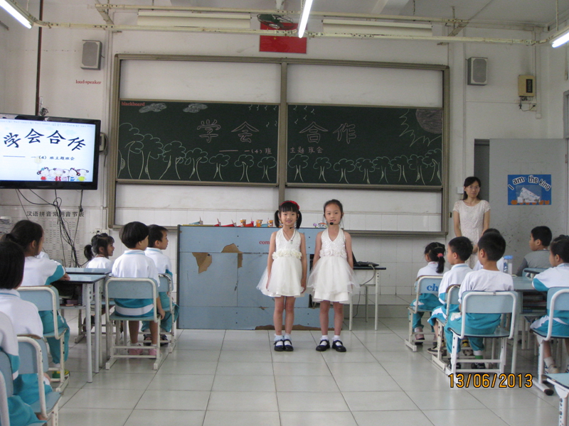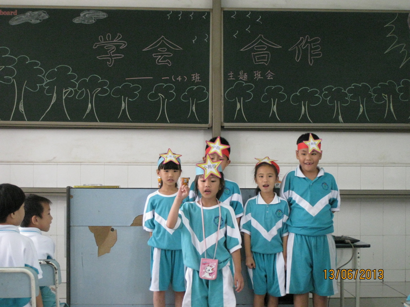 其实,合作就在你我的身边。接着,老师展示着同学们平时合作的一张张照片,还播放了学生跑操、大扫除的视频,学生看着不禁赞叹道:“五人团结一只虎,十人团结一条龙,百人团结像泰山。”合作分享快乐,这堂课最后在一(4)班全体同学优美的歌声中结束了。