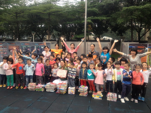 这次活动我们总共收到捐赠书籍300多本,麦田计划的工作人员于4月28日到花城幼儿园和孩子们进行了简单又隆重的捐赠仪式,并通过麦田计划将书籍送到四川雅安的小学。老师、家长和孩子们的无私付出,让我们体会到花城幼儿园的活动温情满载,传递着爱的力量。