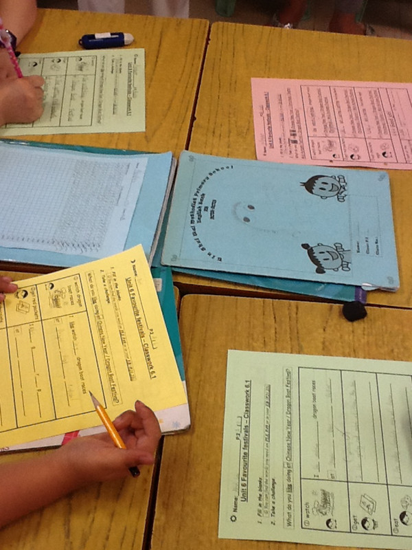 在英语课堂上,我们更是深受启发。二年级的英语课以“Festival”为主线,通过自由对话、小组合作让学生轻松掌握了每个节日的特别庆祝方式以及句型I likedoingsth。教师还设计了解读密码环节,训练了学生的观察能力及英语思维能力。学生的课堂练习分为:黄色、绿色、粉红色,每个颜色代表不同层次的学生,每份练习附加设计了 “Challenge挑战”题目, 鼓励每个学生积极主动向高一级层次跨进,这样的分层教学照顾到了每个学生,促使了学生学习能力的提高。在四年级的英语阅读课上,学生组成六个“station”,每5分钟完成一个“station”的学习任务,有阅读一本课外书,阅读短文、对话,短文写作等等。整节课环节紧凑,练习面广。听课的老师们无不感叹:这样的英语学习氛围,学生的英语能学不好吗?