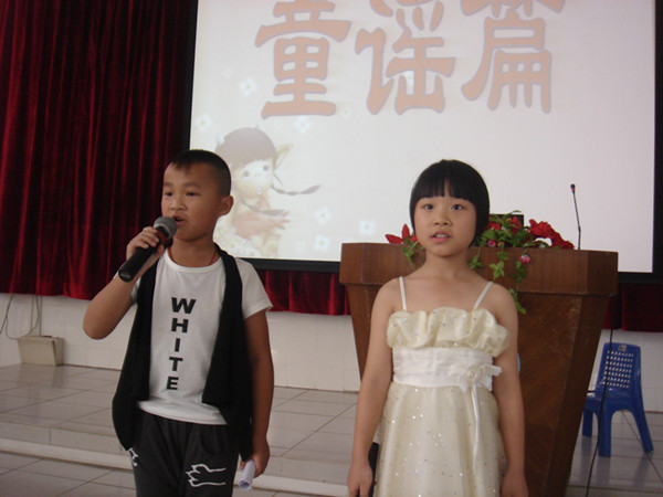 展示会分四部分,以“拉歌”的形式,分班级轮流诵读。第一部分是“童谣展示”,第二部分是“现代儿童诗展示”,第三部分是“古诗和自选诗歌展示”。最后,一、二年级组分别为大家诵读《弟子规》《三字经》。《三字经》《弟子规》是我们中华民族的文化瑰宝,孩子们用天籁般的童声,诵读他们心中美妙的歌!