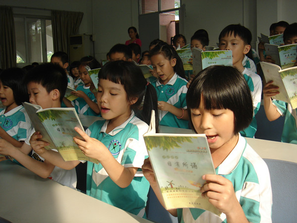 目前,我校低年段经典诗文诵读活动开展得有声有色,诵读场面成为我校一道亮丽的风景线。
