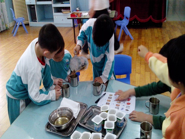 张慧珠老师开展的《斑点不见了》特别吸引小班的孩子,孩子们将鹌鹑蛋分别放进不同的液体里面,不一会儿竟发生变化了,有的液体中的鹌鹑蛋上面的斑点消失了,只见孩子们个个把眼睛瞪得大大的,好奇心、探究欲在此拉开了序幕。