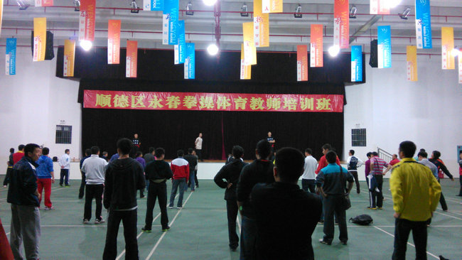 为了推广咏春拳,弘扬传统文化,顺德区教育局组织开办了“顺德区咏春拳操体育教师培训班”,此次培训班由顺德大良咏春拳大师罗德志师傅携徒弟亲自授教。我校响应倡导,派出体育组袁建军、徐国添两位老师前往为期一个月的学习。
