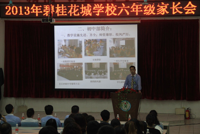 4月17日晚上,碧桂花城学校领导、初中部教师代表以及全体六年级老师与小学毕业班学生家长举行了一次交流会,在会上双方进行了真诚的沟通,为我校六年级毕业工作奠定了坚实的基础。