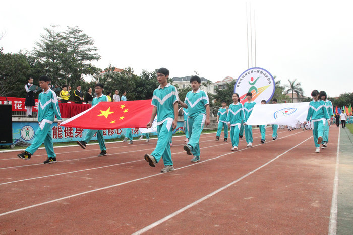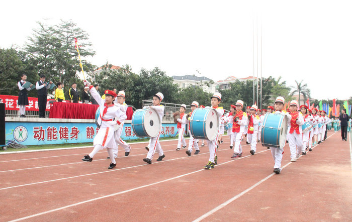 18日下午2:30,隆重的开幕式如期举行,国旗队、校旗队、会徽队、彩旗队在鼓号队的进行曲中,迈着坚定的步伐接受校领导的检阅。接下来是各个班级的入场,运动员们拿着平时喜爱的体育器材,高喊着嘹亮的口号,表明了他们的体育的爱好,展示了我校学生良好的精神面貌。
