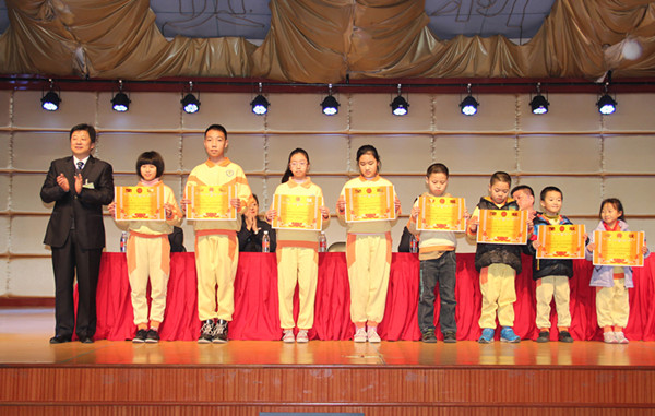 接下来,由我们敬爱的贺校长作总结报告。他谈到,过去的这一学期,老师们兢兢业业,同学们奋发努力,取得了一个又一个喜人的成绩。我校被评为全国特色建设先进学校!在全国习思英语能力竞赛中,我校小学十四位参赛选手有十三位获得一等奖,一位获得二等奖;中学六位参赛选手均获全国一等奖!我校少先大队被评为镇先进大队,团队工作获得陈村镇A级好评,同时我校也荣获“镇德育先进学校”称号!所有荣誉的取得,同学们的点滴进步都离不开老师们无私奉献、锐意进取。同时贺校长也祝贺同学们取得了优异的成绩和进步。校长勉励全体师生,在新的一年,我们满怀希望,努力拼搏,用我们的勤奋、激情与创新书写更美好的明天。