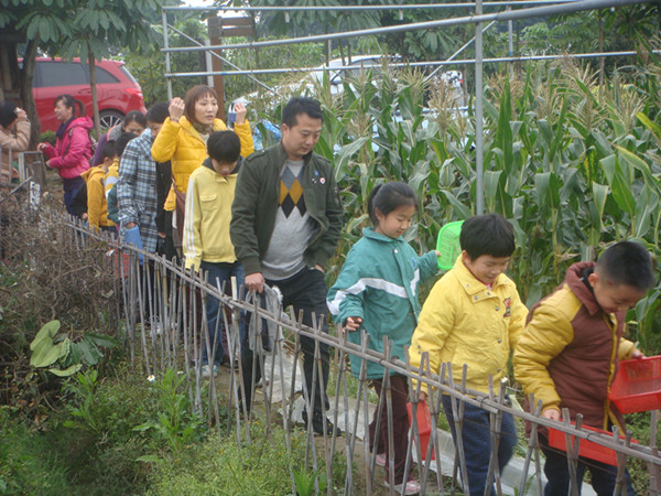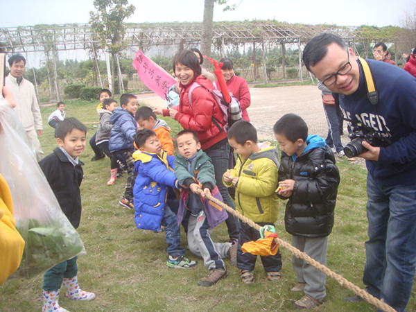 在充满了田园风貌的罗南生态园里,孩子们和家长们一起携手采摘玉米,近距离观察稀有的植物---禾雀花,寻找奇异的果子--柠檬;在这里,大家自由呼吸新鲜空气,感受大自然和泥土的气息。活动期间孩子们还进行了拔河比赛,在三局两胜的激烈角逐中,孩子们锻炼了身体,磨砺了意志,感受了集体的力量,深刻体会到了和谐融洽的集体带给每个孩子的的欢乐。