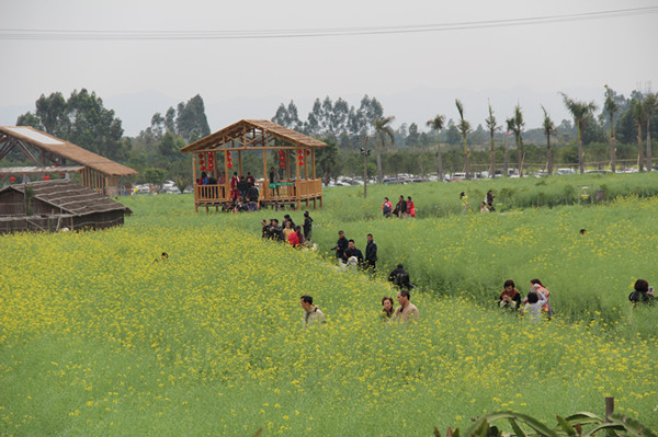 在生态园里,爸爸妈妈和孩子们一起寻找春天,欣赏春天,品味春天。