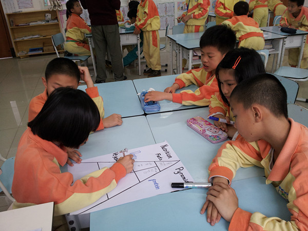 PYP的课程组织形式的设计倡导小组合作学习、积累、整合运用知识,知识和技能的习得与理解意义的能力的提高最好是在探索相关内容的情境中进行,教师作为一个智者,在整个教学活动中发挥自己的才智,努力创设具有趣味性、相关性、挑战性和重要性的情境,精心设计每个教学环节,努力把握每个知识点的内涵和外延,科学整合学科之间的知识,用心渗透价值观的教育,让学生在课堂上的受益最大化。