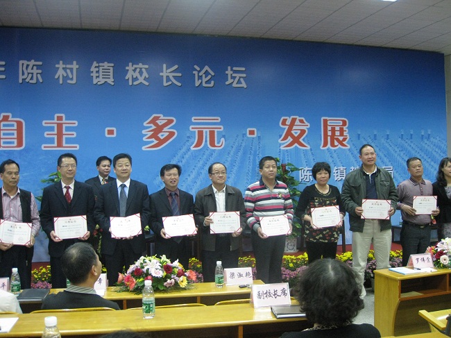 论坛最后,陈村镇教育局对优秀校长论文颁发了证书,在此次校长论文评选活动中,贺校长的论文被评为一等奖。