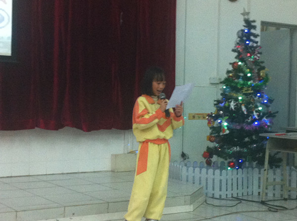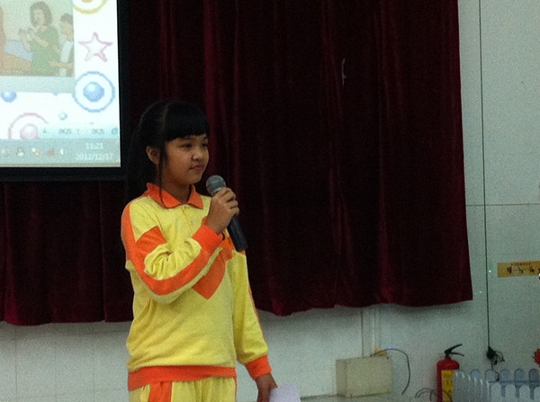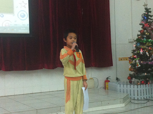 12月17日上午11点,在欢快的音乐中,四年级英语口语竞赛拉开了我校“圣诞英语欢乐周”的序幕。现场的同学们都沉浸在这喜悦的节日之中。本次口语竞赛分两大部分--看图说话及现场问答。刚开始,选手们都比较紧张,但在老师和同学们一次又一次的掌声中汲取了力量,每位参赛选手都赛出了自己的风格,赛出了自己的水平。通过紧张激烈的角逐,本次竞赛结果如下: