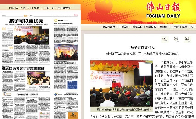 “我家的孩子读小学三年级,但是他喜欢一边听电视一边做作业,怎么办?”“我家的小孩二年级,阅读习惯很不好,该怎么改正?”“我家的孩子不愿意交作业,要怎么教育他?”……周日,“2012新东方家庭教育中国行大型公益巡讲(佛山站)”在碧桂花城学校举行,讲座的主题是“让爱成长――怎样才能使孩子的学习更优秀”。讲座中,武汉大学社会学系教授周运清,结合三十多年的研究实践经验,向家长们传授如何培养学习更有优秀的孩子,讲座结束后,家长们都纷纷抓紧机会向周教授请教如何教育孩子,帮助孩子改掉一些学习上的坏习惯。 佛山日报记者 高为慧 让孩子增强学习信心 孩子为什么不愿意学习?周教授归纳了几个原因:因为作业负担重,重复劳动造成学习心理逆反;学习成绩评估手段单一,学习成就感差,失去学习的信心,缺少亲情关爱和安全,造成心理能量低下,学习能量缺失。 “学习成绩不好,孩子在学校挨批评,回到家也挨批评,还怎么有信心学下去?信心是由成就感培育的,家长们要做的就是创造条件鼓励孩子,善于发现孩子的成就,给予孩子学习的信心。”周教授说。家长和孩子之间有四种关系,第一种是背靠背,家长对孩子完全不闻不问;第二种是面对面,家长所有事情都帮孩子安排好;而第三种就是心连心,家长理解孩子关爱孩子;第四种是肩并肩,有问题家长就和孩子一起解决。周教授建议家长们要学会做第三和第四种家长。一有时间就和孩子一起玩,增进亲子之间的感情,给孩子自由的空间,让他对作业有选择权和自主权,增强学习的主动性。周教授也建议家长可以和孩子一起建立微博、QQ空间,让孩子发表评论,建立信心。“现代信息与技术的应用能力是孩子的重要学习素质,要相信自己的孩子,让孩子上网学习,家长只要做好科学引导就可以了。” 帮助孩子建立知识树 复习是知识学习的落实环节,通过复习,可以使学过的知识系统储存。但是周教授认为复习并不代表死记硬背,而是应该构建知识树,整理和归纳知识点,帮助记忆。周教授建议家长可以帮助孩子建立一个“易错题本”,每周、每月、每学期对错题进行复习整理,这样可以避免许多学习弯路和回头路,大大的提高资料的利用率和复习效果。错题本不单应该包含平时复习、练习、测验、考试过程当中容易犯错的题目,还应该包括课外辅导资料、报刊上搜集到的经典题目。与此同时,通过错题本,家长也可以了解孩子在什么科目有哪些问题,督促孩子在这些方面进行改进。 留意孩子的学习行为 为什么有的孩子听力很强?为什么有些孩子在学校和家里都不爱看书?为什么有些孩子喜欢一边做作业一边听音乐?原来,这些都是由孩子的学习个性所决定的。听力很强的孩子,因为他是属于听觉型学习个性的;有些孩子如果把东西写下来,他会记得更牢,这是属于视觉性学习行为;有些孩子做作业或者学习的时候,需要是不是休息一下,这或许是属于触觉型学习的孩子。家长一定要注意观察自己孩子的学习行为,针对他的行为特点构建个性化的策略和学习方法,以便于帮助孩子提高成绩。 培养大智慧,克服蒙题教育 “树上有十只鸟,猎人一枪打死了一只,还剩几只?有一次,我在演讲的时候提出了这样一个问题,许多人说猎人的枪声吓跑了其他鸟,所以树上只剩下死了的那只鸟。但是一个学生突然冒出一句‘你不让其他鸟当中有的是聋子?’这句话当时把我给愣住了。”周教授说,“条件不同结果也会有千差万别,所以,学习一定不能蒙题,要认真审题、辨题、切题。家长们对孩子的解题与考试能力重点落在大智慧的培养上,知识社会也是考试社会,解题能力与考试能力都十分重要,千万不要在这个问题上有误区。” |