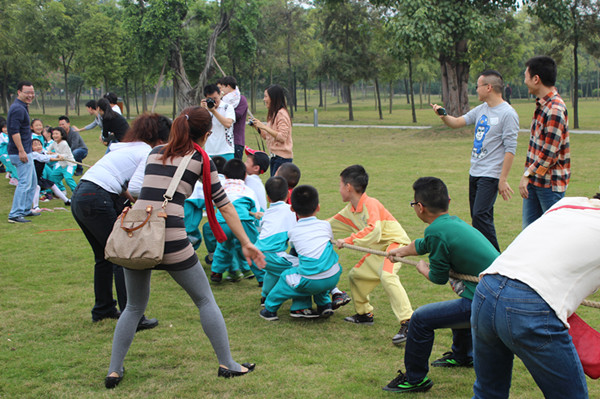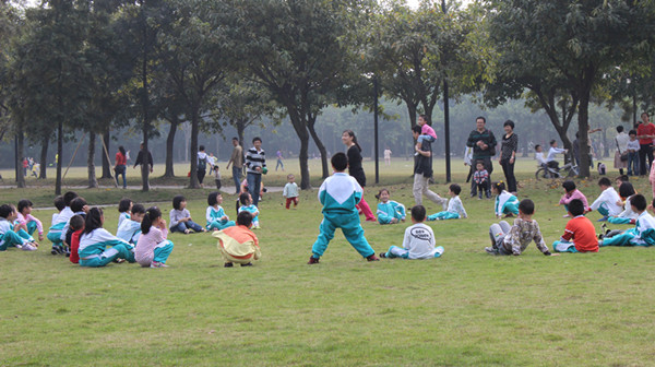 孩子们以天为幕、以地为席,在大自然的怀抱下和爸爸妈妈一起参与了游戏活动,公园内到处洋溢着他们的欢声笑语。在活动中增进了孩子与家长、老师之间的情感交流,增强了孩子们的集体荣誉感和凝聚力。孩子们还表演了自己精心准备的节目,虽然场地条件有限,但孩子们精彩大方的表现赢得了家长们的阵阵掌声。
