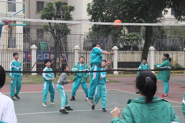 首先对阵的是七年级,比赛一开始,七(1)班就频频得分,本局比赛,七(1)班以25比12获得第一局胜利。第二局,七(2)班在体育委员的带领下打得风生水起,以25比22扳回一局。在决胜局中,七(2)班又以15比10获得胜利,夺得了七年级组比赛的冠军。