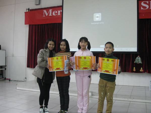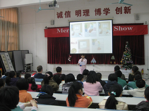 12月19日(周三)上午11点,碧桂花城学校一楼阶梯教室里洋溢着欢乐的气氛。五年级全体师生以及三位外教口语老师聚集在这里举行圣诞欢乐周之五年级口语竞赛。本次口语竞赛分两个部分:一、来自四个班的八位参赛选手根据现场抽签顺序依次进行看图讲故事;之后由外教现场提问,选手作答。看着他们镇定自如的表现,在场的老师和同学们都禁不住感叹他们的实力。每位参赛选手都赛出了自己的风格,赛出了自己的水平。二、为了让现场的同学都能参与其中,我们还特意为他们准备了找不同之处和关于圣诞节的知识问答。孩子们都沉浸在这喜悦的节日之中。最后通过紧张激烈的角逐,本次竞赛结果如下: