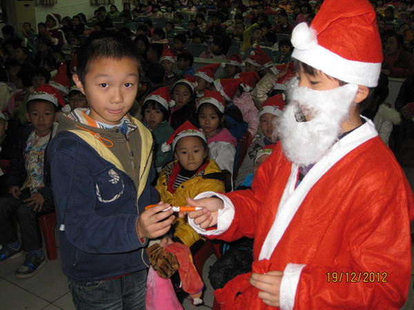 各班以一首圣诞歌曲秀出班级风格,有Jingle Bell, Santa Claus is coming to town, Angel is watching over me等。有知识问答小游戏,还有圣诞老人和圣诞小天使给大家发礼物呢!
