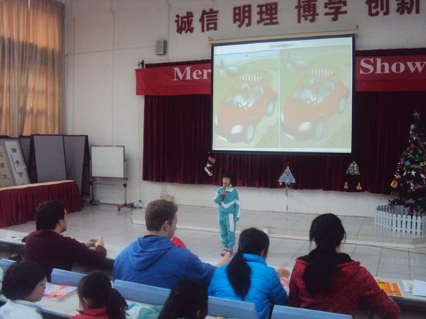 这一周是我们的“圣诞英语文化周”。孩子们尽情地享受着各种圣诞英语活动带来的快乐,如圣诞电影夜、圣诞英语秀等等。12月20日,我们三年级的圣诞英语口语竞赛也为“圣诞英语文化周”送上了一份圣诞大餐。上午11点,三年级所有同学准时来到阶梯教室。紧张激烈的比赛开始了。比赛的内容分为三个部分:一是自我介绍,二是.找不同,三是自由问答。参赛选手从各个班中选出,出场顺序由抽签决定。9名选手都很好地展现了自己的英语水平和良好的舞台素质。经过紧张激烈的角逐,获奖名单如下: