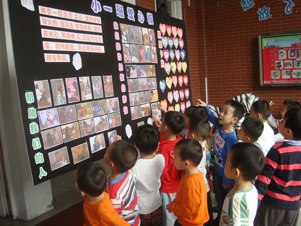 小班的孩子进行感恩小行动,回家给爸爸、妈妈拿拖鞋或自己吃饭、自己穿衣等,做力所能及的事情,并让家长拍下照片发送给老师。感恩节当天,由教师收集整理感恩照片后布置爱心展板。同时在爱心展板上展示各班幼儿亲手制作的漂亮的感恩卡片。