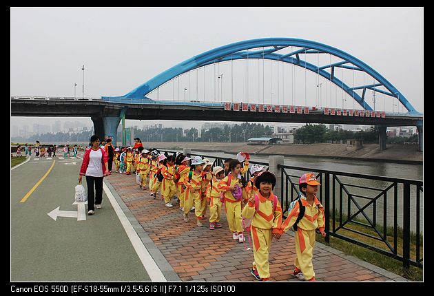 本次远足路径从幼儿园到碧桂花城河堤绿道约1500米,时间控制在1小时内。提前一周,老师们就提前对孩子们进行了户外安全常识培训和远足活动的目标渗透,出发时由梁园长和陈主任亲自指导并带队,而且安排了班级教师、保健员、家长义工参与活动组织。