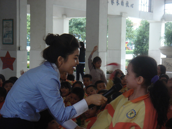 善于调动气氛的Miss Annie 通过各种游戏,让孩子们或猜或认,同学们踊跃参与,让整个大厅洋溢着欢快的气氛。Thsee era ym hiwet outrsres. 你能看出这是什么句子吗?有点难度吧!孩子们可厉害了,一下就读了出来:“These are my white trousers.”展现了孩子们通过平时大量阅读训练积累起来的对语言的感悟能力。