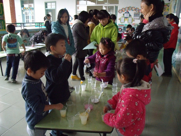 观摩活动后,园领导及时组织教师进行说课和评课交流。交流中,大家尽情阐述自己的观点,对其中的不足之处给予了可行的改进建议,使执教老师在自身原有基础上获得较大的进步和提升。经过集体评课,产生出较多的优秀课例,如汪文强老师的《吸水性试验》、周水英老师的《水的秘密》、汪冬洁老师的《自制泡泡水》、代力强老师的《纸娃娃》等,这些课例设计新颖,操作性强,孩子都非常喜欢,也给听课的老师留下了深刻的印象。