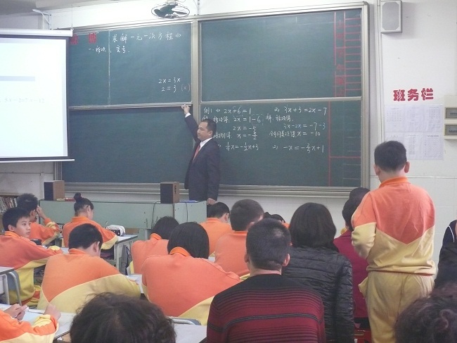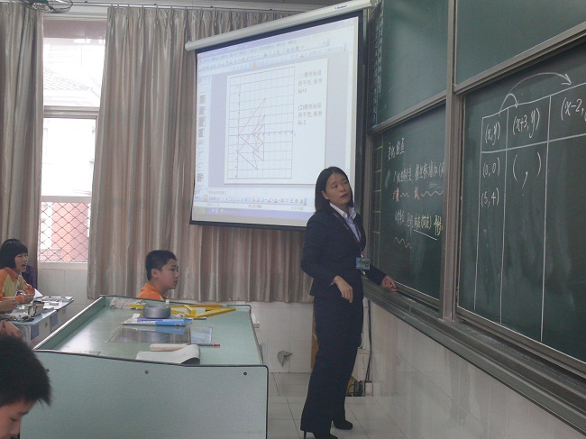 初中数学组提前两周做好了充分准备,几位数学老师集体备课共同探讨。八年级数学郑碧云老师从教16年,积累了丰富的教育、教学经验,教学成绩突出。2001,2003年中考,及格率优秀率在全市分别排名前3,辅导学生参加全国初中数学竞赛,获得全国二等奖,多次被评为“全国优秀辅导员”,镇优秀班主任、先进教育工作者。郑老师给家长展示了《变化的鱼》,一直在引导学生动手改变图形的坐标并观察图形发生了怎么样的变化,真正做到了学生为主体,把时间交给了学生,培养了学生的动手能力,让学生自已去探索规律,从中获取知识,给家长一个崭新的课堂模式。七年级数学欧阳晃增老师,本科学历。从教12年,12年班主任、11年初三教学。市优秀教师、区先进教育工作者;辅导学生参加初中数学联赛获市一等奖、2002年所带46名学生中25人被省重点高中录取、1人获市中考奖元。欧阳老师给家长展示了《求解一元一次方程(1)》,课堂井井有条,讲练结合,语言诙谐幽默,让学生在快乐中获取到知识。临近天黑时,有些家长依然不愿离开,还在和两位数学老师交流着……