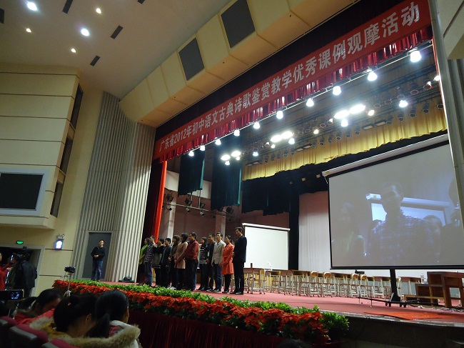 为了贯彻落实课程标准精神,深化我省语文教学改革,广东省教育研究院教学教材研究室语文科于今年举行了初中语文古典诗歌鉴赏教学专题教研活动。我与李明晖老师在2012年12月5日到达肇庆市报到,参加6日开始的为期三天的初中语文古典诗歌鉴赏教学优秀课例观摩活动。