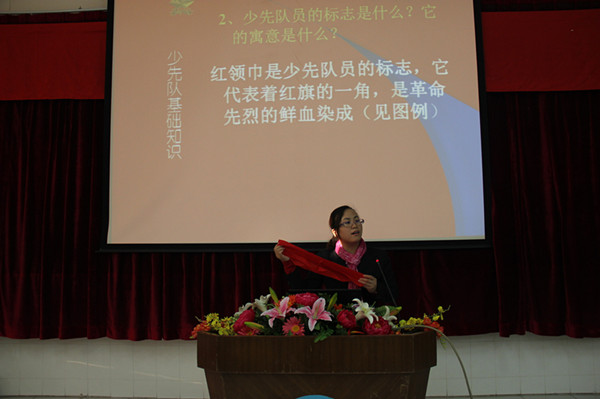 12月7日下午,一年级全体同学聚集在阶梯教室开展了入队前的培训活动。