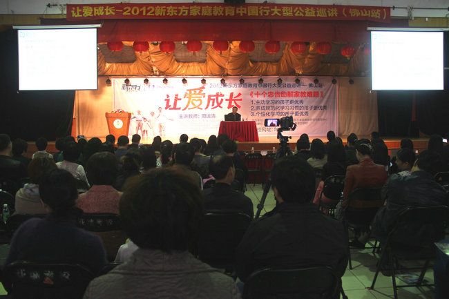 为传播先进的家庭教育理念,帮助家长解决困惑,促进家庭和谐美满,成就孩子的幸福人生,碧桂花城学校与《佛山日报》教育周刊邀请新东方家庭教育高峰论坛名师,于2012年12月15日上午9点,在碧桂花城学校综合馆举办“新东方2012家庭教育中国行”(佛山站)大型系列公益讲座。作为中国知名教育培训机构,新东方家庭教育高峰论坛汇聚了海内外优秀的家庭教育资源,我们此次邀请到的专家是周运清教授。周运清教授是亚洲基督教高校联合会访问学者,香港树仁学院访问教授,武汉大学社会学系教授,新东方教育科技集团家庭教育研究与指导中心首席特聘顾问,全国家庭教育专家讲师团成员,湖北省家庭教育报告团团长。