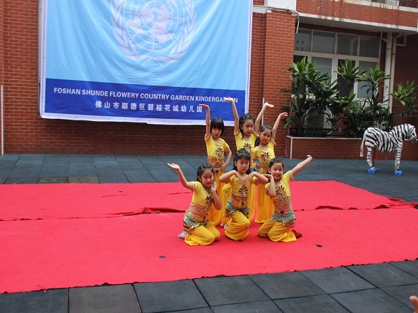大班的小朋友在干什么呢?当然大班的哥哥姐姐也不会示弱。国际大一班代表的是欧洲,他们给大家跳了一段精彩西班牙斗牛舞,外教Mr. F ilex扮演的“牛”给大家带来了阵阵欢笑。还有国际大二班代表的是亚洲,他们给大家表演了中国功夫,可神气啦。在Mr. Steven的带领下孩子们和他一起喊出了:“钓鱼岛是中国的!”家长们及时给予了热烈的掌声回馈。
