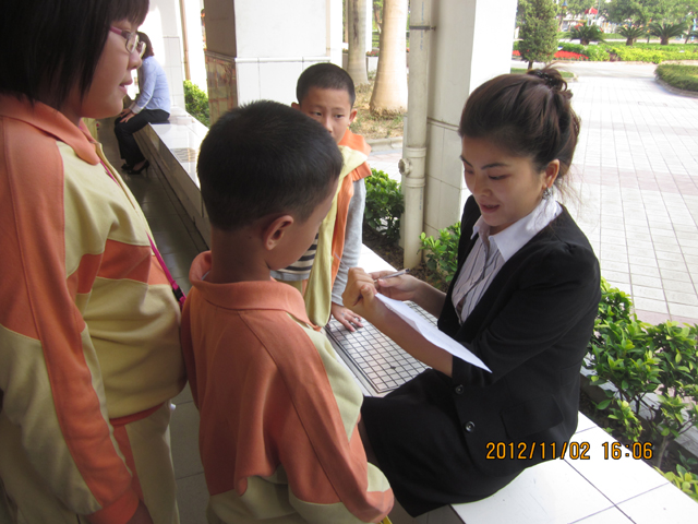 11月2日下午4点,四年级英语角准时在一楼大厅开始。一时间,大厅变成了英语的海洋。在这里,在此时,你听不到汉语。孩子们落落大方地向评委老师用英语打招呼,热情洋溢地用英语介绍自己,从外貌,性格,到喜好。