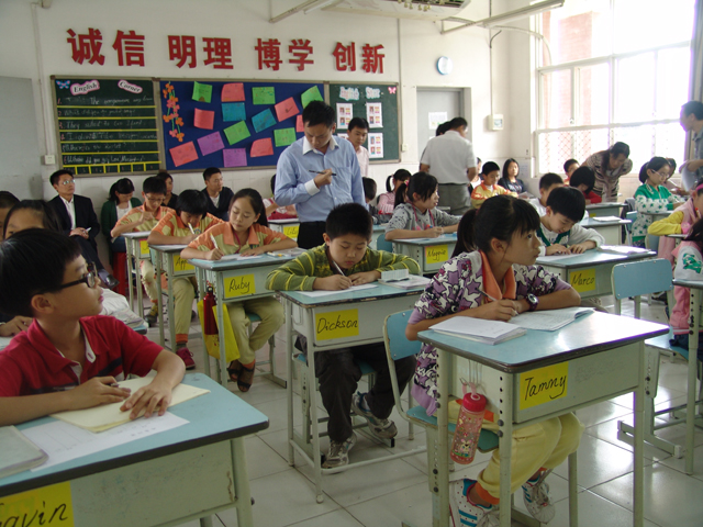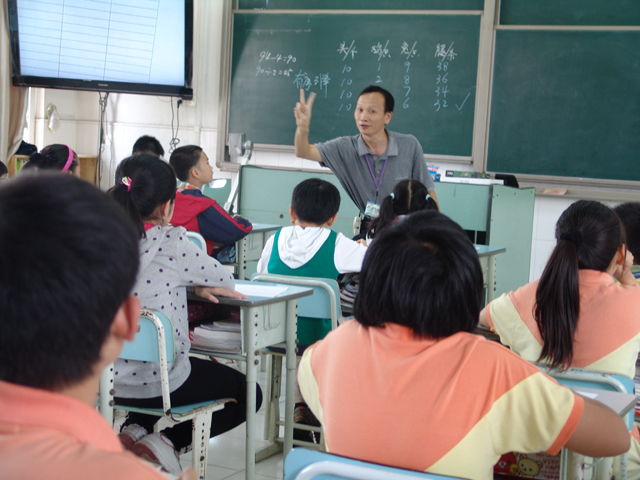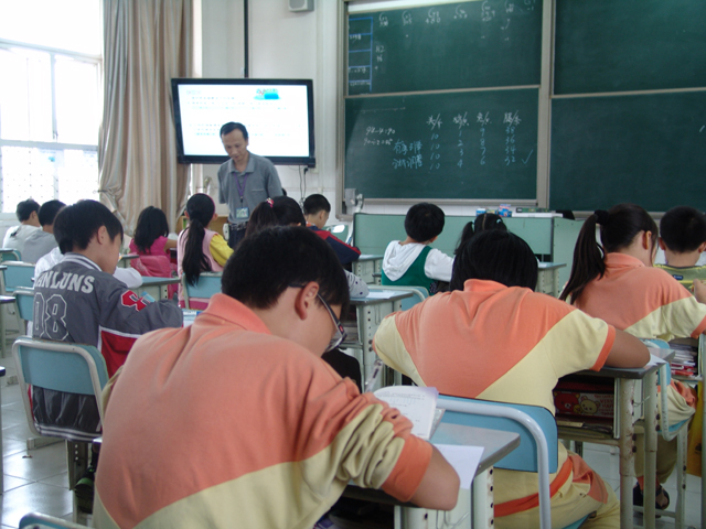 2012年11月7日下午,四年级黄杰老师在五年级借班上了一节研讨课。课后,全体数学老师进行了深入的探讨。