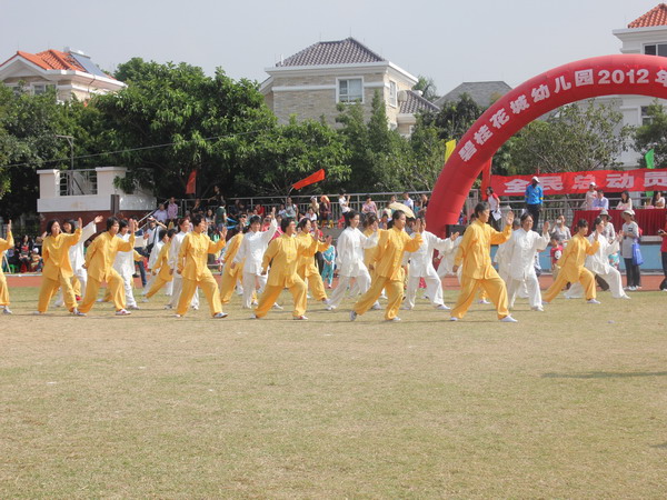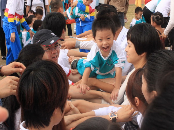 2012年11月10日上午,在碧桂花城学校大操场上,到处彩旗飘飘、热闹非凡,伴随着《运动员进行曲》的奏响,各运动员方阵入场了。首先入场的是旗队方阵,接着是国际班的小朋友和家长们,他们穿着整齐的服装,在外教老师的带领下,踏着整齐的步伐,喊着响亮的口号,精神抖擞地进入会场;然后是大班级组和中班级组的小朋友入场,小班、小小班的宝宝们也不示弱,他们和妈妈手牵手,心连心,在运动会上展示自己的风采。另外,由各班家长代表组成的家长太极拳方阵,人人身穿太极服,雄赳赳、气昂昂,形成了运动场上一道独特的风景线。最后入场的是教师方阵,她们个个笑容灿烂、充满活力,一入场就赢得了所有观众们的掌声,真是气势非凡!各运动员们那积极向上、健康和谐的精神面貌,也深深地感染了在场的每一位领导和家长们。