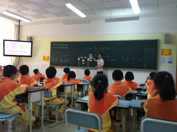 陈坚老师的《I can speak English》是一堂复习课。Miss陈将游戏贯穿于教学中,让学生在玩中学,在学中玩,学习气氛浓厚,效果良好。特别是游戏“What can Simon do?”深受学生的喜爱。
