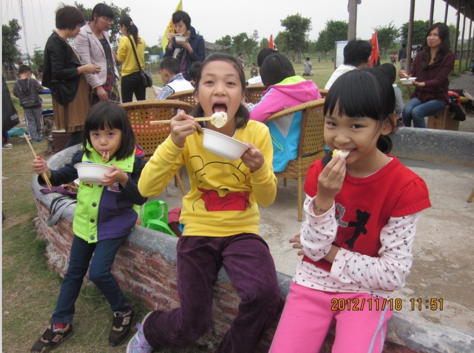 我跟同学们玩了一会儿,就去包饺子。这可闹笑话了。看,“花饺子”,“垃圾饺子”,“椅子饺子”,啥都有,而且个个都有创意。林思翰最搞笑,捏都没有捏好,就放在碟子上,我们都说:“你自己包的饺子你自己吃!”我们包完以后,还需要大人们来加工,看来我们的技术还不过关呢!