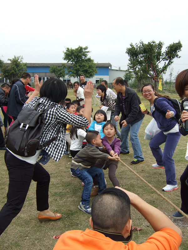 紧接着我们最精彩的活动上演了――两人三足。每组派出一名家长和自己的孩子,同时绑上相邻的两条腿,齐步向前走,看谁的速度既快又稳,最先到达终点。游戏考验了家长和孩子之间的默契和协调能力。在裁判的一声令下,每组的成员都争先恐后地向前冲。期间他们也顾不上自己的动作,更有甚者直接把孩子拎起来,向终点进发,引得我们大家哈哈大笑。第二个游戏是拔河比赛,我们的小选手们个个都精神抖擞,哨声一响,孩子们个个都用尽吃奶的力气,小脸憋得红红的。我们家长在旁边更是卖力地大喊:“加油、加油、加油……”在我们家长的拔河比赛中出现了小插曲,我们竟然两次把绳子拉断了,摔了个四脚朝天,但笑声却更大。看来我们家长比孩子玩得更猛!这时家长们好像都忘记了年龄,仿佛回到了童年时代……