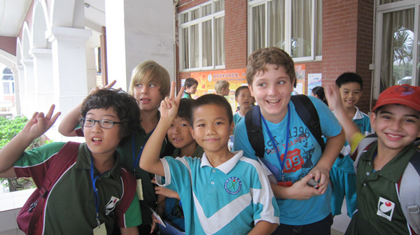 随后花城学校三年级、四年级国际班的小朋友还和来访的同学进行了“手拉手”互动交流,每一个环节中都融入了新朋友们的笑脸,从有些害羞到开心参与,知识的交流与传承完全打破了国界,快乐成长是彼此共同的主题。
