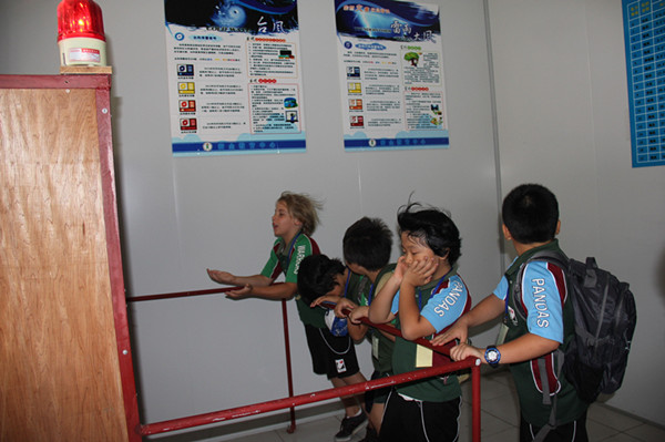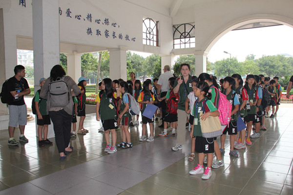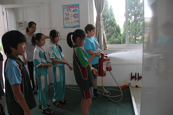 61位国际友人分成6个小分队,在花城学校四(1)班学生的引领下参观了安全体验中心。特别值得一提的是,在安全体验中心,四(1)班的学生代表主动承担了现场英语解说和维持纪律的任务,他们以标准的语音,灵活多样的解说方式给来访的老师和学生留下了深刻的印象。
