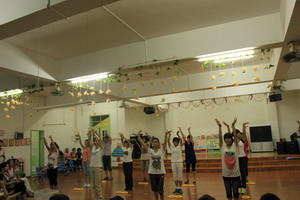 10月16日晚上,我园举行了教师早操展示活动。活动按年级组进行,小小班级组,以模仿操为主,动动头、动动手、拍拍肩、拍拍腿,并加入礼仪的元素,不仅锻炼了身体,还能教会幼儿如何向别人打招呼问好;小班级组,利用器械――手铃,增添孩子对早操的兴趣,动作整齐有力;中班和大班级组,生动活泼的水果操,好玩有趣,还有优美的印度舞和新疆舞,令在场的观众都想上前一起舞动。