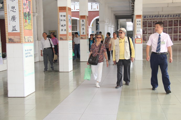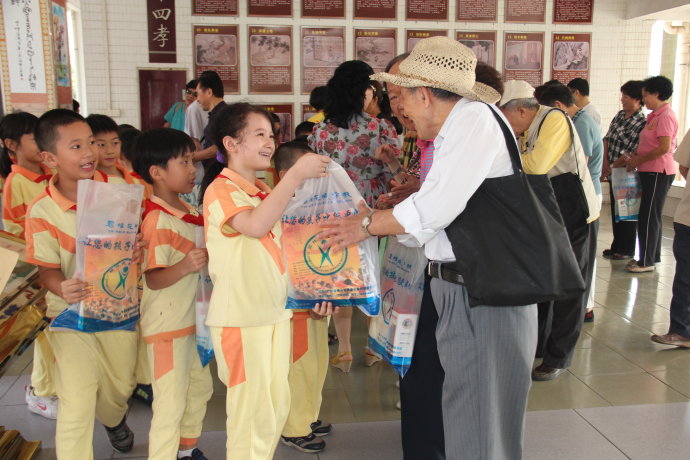 10月22日上午十点,24位老人走进花城校园,首先参观了学生的课间操情况,并向接待的老师详细询问了学校的各方面情况。继而参观了学校一楼大厅的环境布置,碧桂花城学校贺校长亲自为来宾一一介绍了《二十四孝图》、美国文化之旅、读书漂流瓶以及安全教育中心等校园文化建设,获得了来宾的一致好评。参观结束,小朋友们为每位老人送上了一份精美礼品和祝福,老人们异常高兴,对孩子们的文明有礼称赞不已。