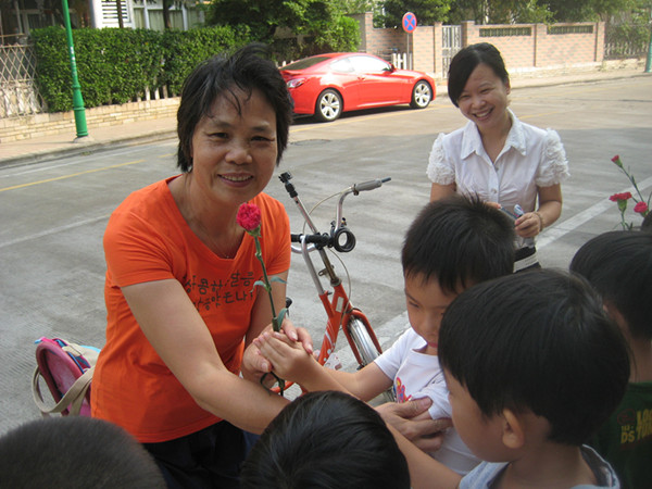 除了为老人献花,老师还对幼儿介绍了重阳节的来历、风俗习惯等,孩子们十分感兴趣。