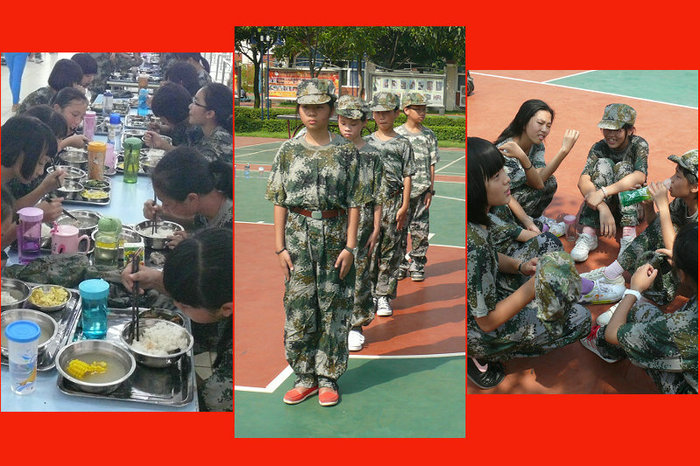昨天被太阳暴晒得到了适应,今天不再头晕,教官觉得我们表现不好,在太阳下站了近一个钟,在站时不断地说加十分钟,还说下午要站一个钟。吃中午饭时,还让我们站着吃,很多人吃了几口就走了,大家都没什么胃口。下午时还好我们机灵,才让我们在树荫下训练,训练中因为有些反应慢半拍,整个训练都慢了半拍,反复做同一个项目,整天下来人都累趴下了。