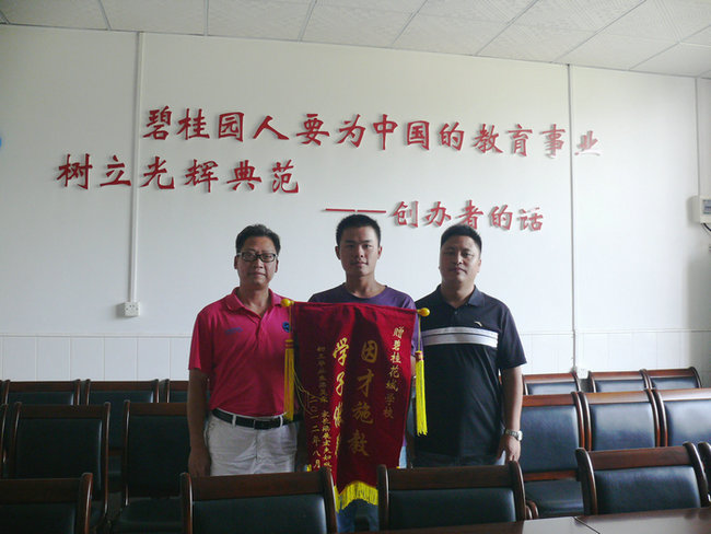 8月28日上午,艳阳高照,碧桂花城学校校长办公室里欢声笑语,格外热闹,原来,今年刚考入顺德一中的原九(1)班学生梁昊霖和他的爸爸梁先生给母校送锦旗来啦!梁先生捧着一面鲜红的锦旗,紧紧握住贺校长的手,深情地说:“感谢花城学校九年来的精心培养,让昊霖变得这么优秀!”贺校长乐呵呵地接过锦旗,连说“谢谢”!接下来,两人围绕孩子的教育问题,进行了友好而深入的交谈。梁先生对贺校长的办学理念表达了由衷的赞赏,高度肯定了我校的办学成绩。