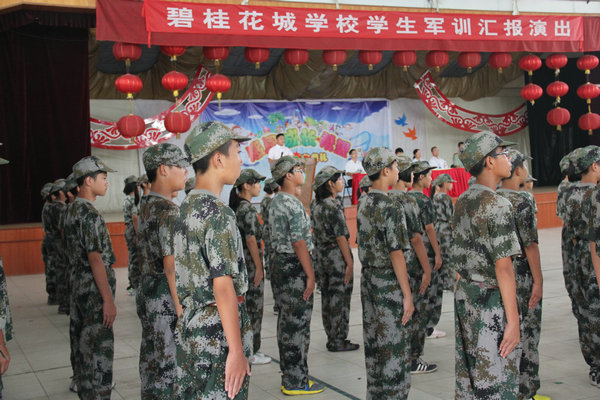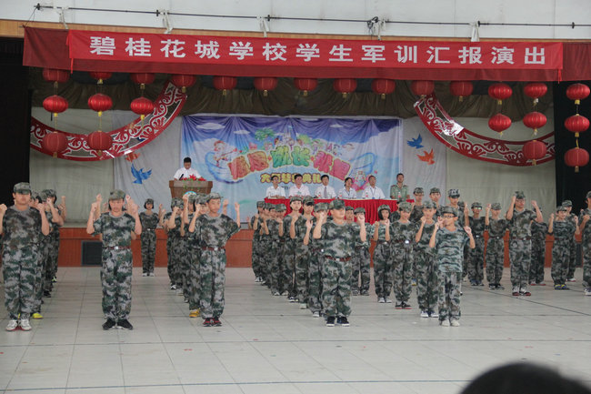 2012年8月29日下午,七八年级军训汇报演出在综合馆如期举行,三位军训教官、碧桂花城学校领导和七八年级全体教师及学生家长观看了汇报演出。