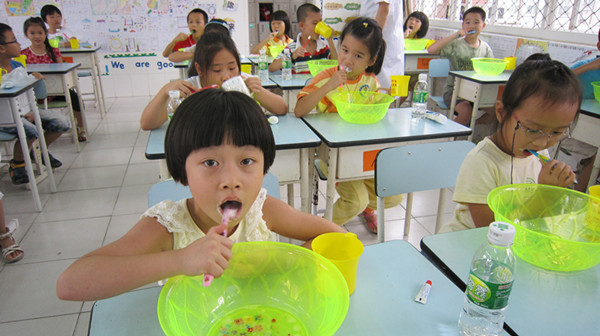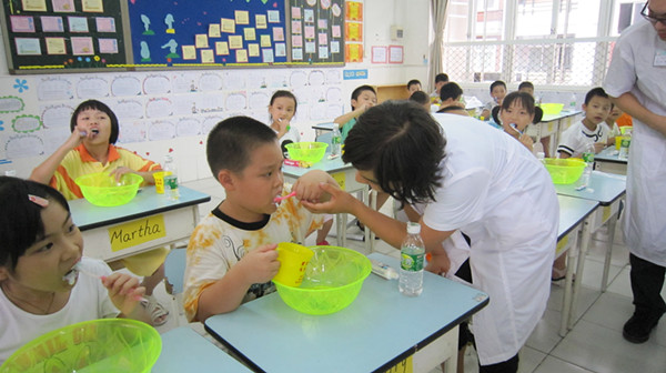 为了更好地创建“文明佛山”,提高佛山市民整体口腔健康水平,使孩子从小养成良好的口腔卫生习惯,我校三年级全体学生于9月5日下午,在佛山市口腔医院医生的指导下进行了“爱牙,刷牙,我最棒!”的刷牙比赛。