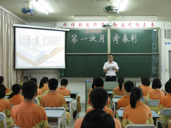 9月7日下午第七节课,九年级全体师生在九(1)班教室召开了第一次月考总结表彰大会。会议由九年级级长代天良老师主持。贺校长出席会议并作了重要讲话。会议气氛热烈、鼓舞人心。